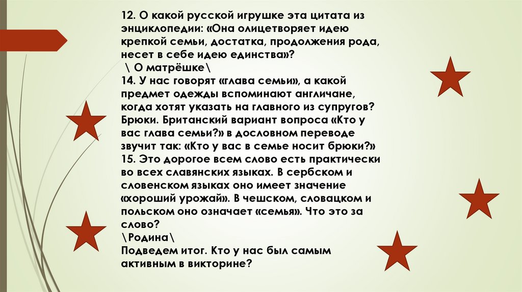 12. О какой русской игрушке эта цитата изэнциклопедии: «Она олицетворяет идею