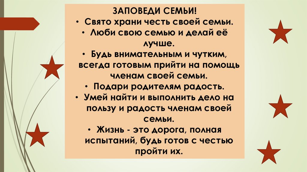 ЗАПОВЕДИ СЕМЬИ!• Свято храни честь своей семьи.
