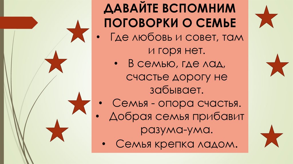 ДАВАЙТЕ ВСПОМНИМПОГОВОРКИ О СЕМЬЕ