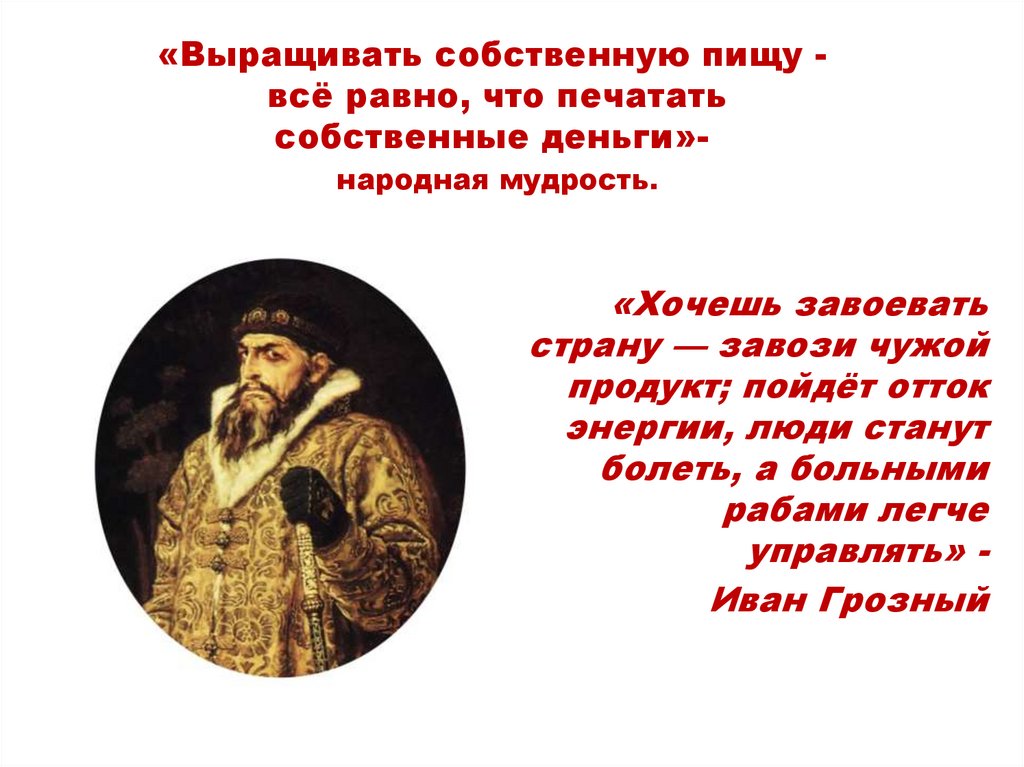 «Выращивать собственную пищу всё равно, что печататьсобственные деньги»народная мудрость.