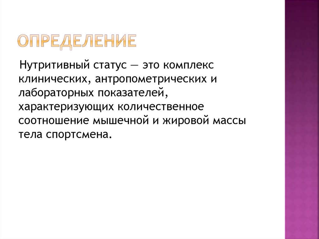 Нутритивный статус — это комплексклинических, антропометрических и