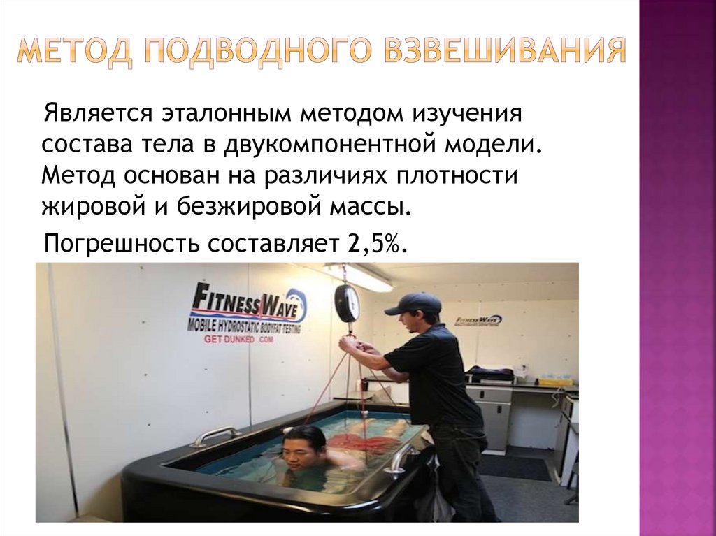 Является эталонным методом изучениясостава тела в двукомпонентной модели.
