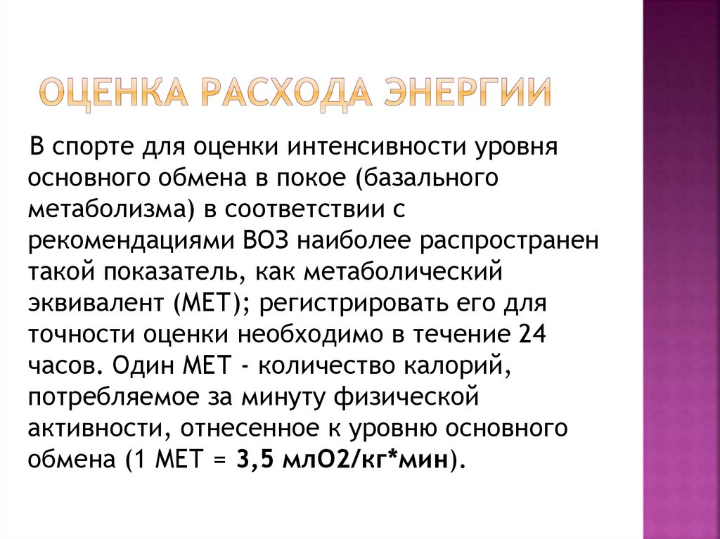 В спорте для оценки интенсивности уровняосновного обмена в покое (базального