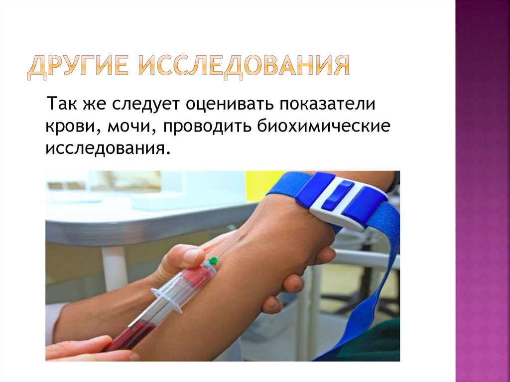 Так же следует оценивать показателикрови, мочи, проводить биохимические