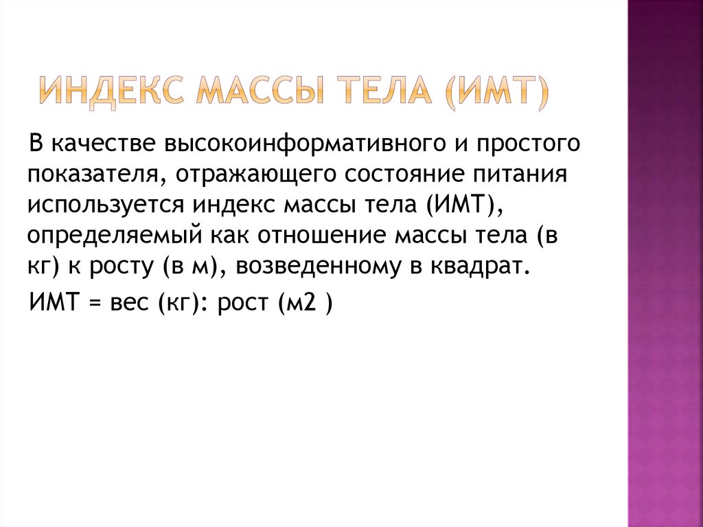 используется индекс массы тела (ИМТ),