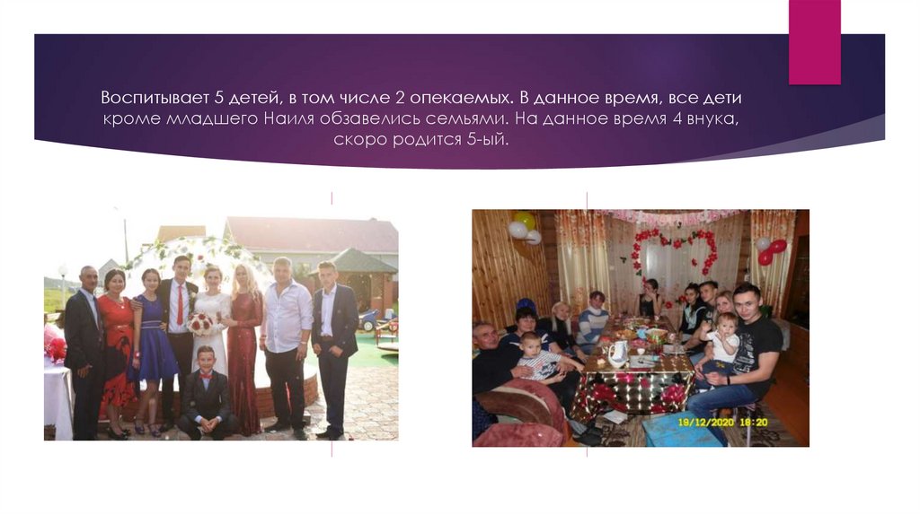 Воспитывает 5 детей, в том числе 2 опекаемых. В данное время, все детикроме младшего Наиля обзавелись семьями. На данное время 4 внука,