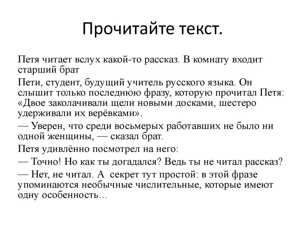 Прочитайте текст.Петя читает вслух какой-то рассказ. В комнату входит