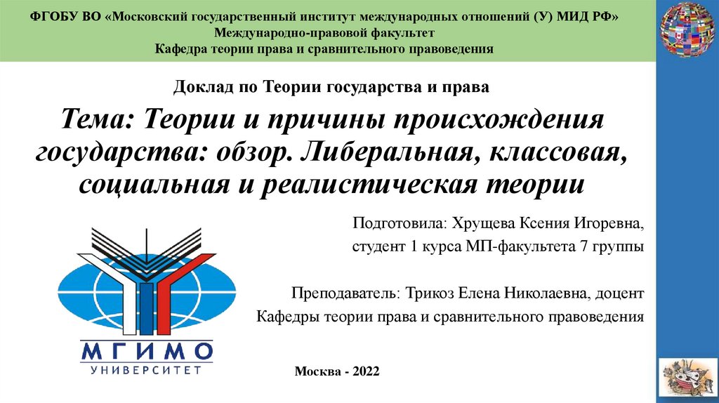 ФГОБУ ВО «Московский государственный институт международных отношений (У) МИД РФ»Международно-правовой факультет