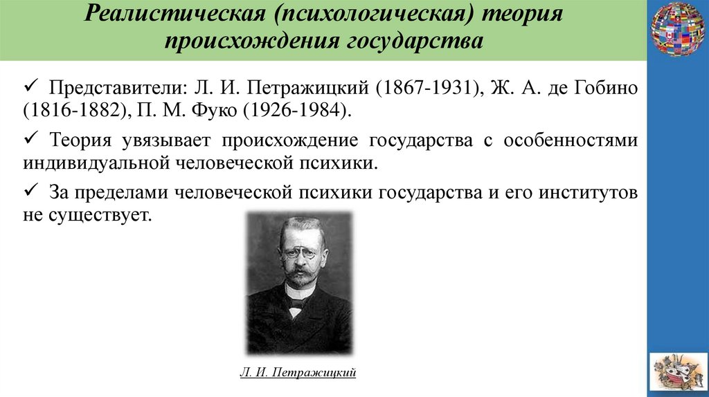 Представители: Л. И. Петражицкий (1867-1931), Ж. А. де Гобино