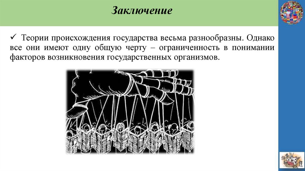 ЗаключениеТеории происхождения государства весьма разнообразны. Однако