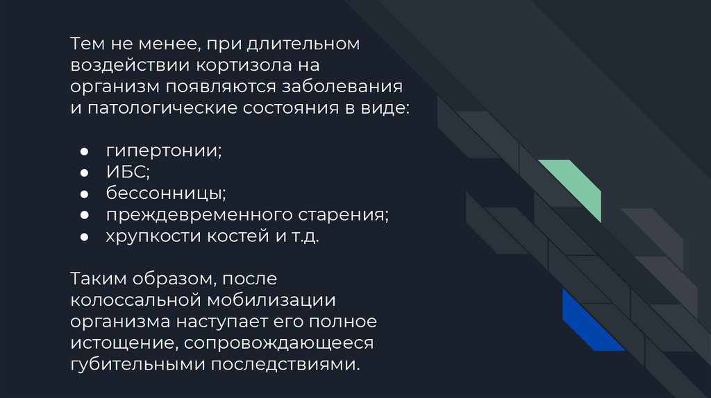 Тем не менее, при длительномвоздействии кортизола на
