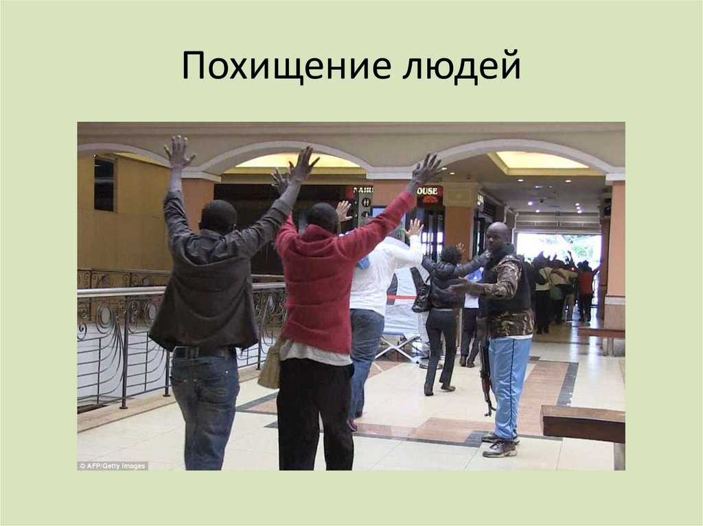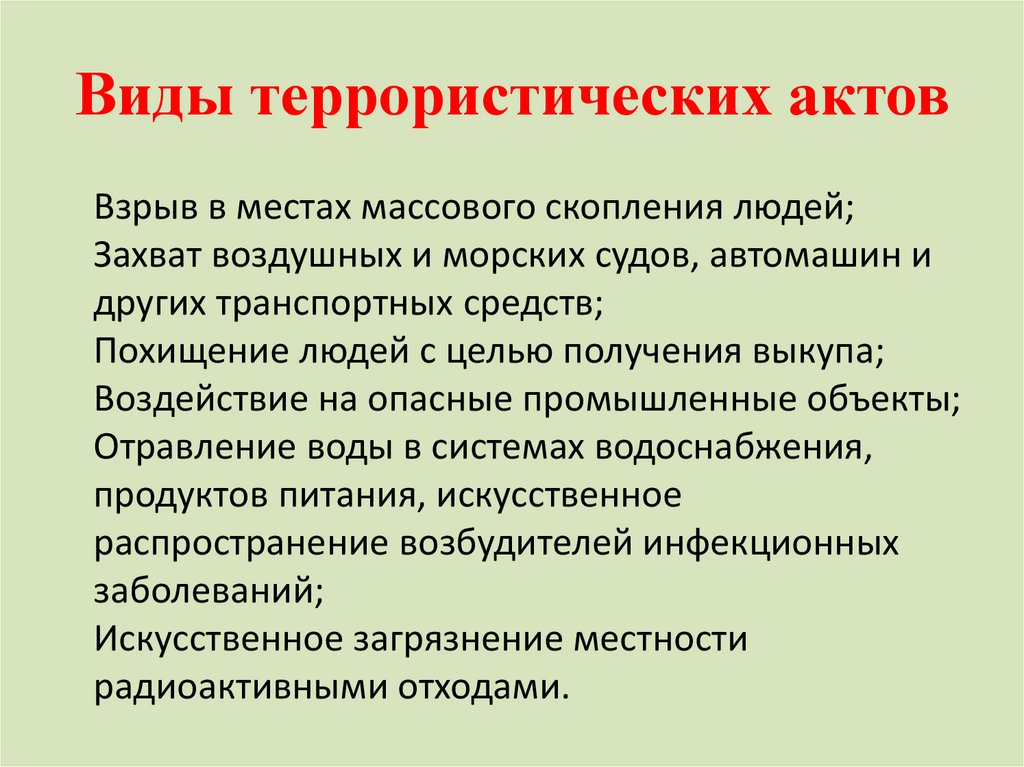 Виды террористических актовВзрыв в местах массового скопления людей;