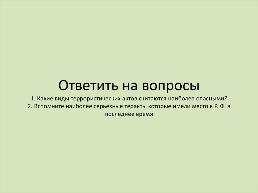 Ответить на вопросы1. Какие виды террористических актов считаются наиболее опасными?