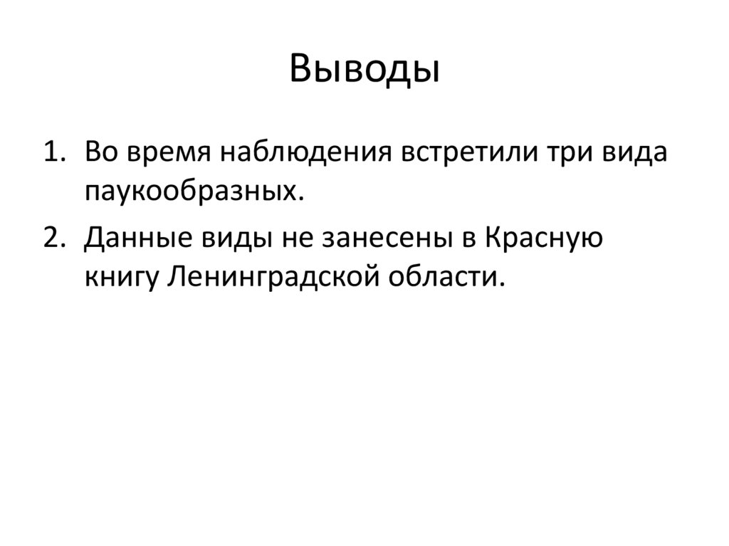 Выводы1. Во время наблюдения встретили три вида