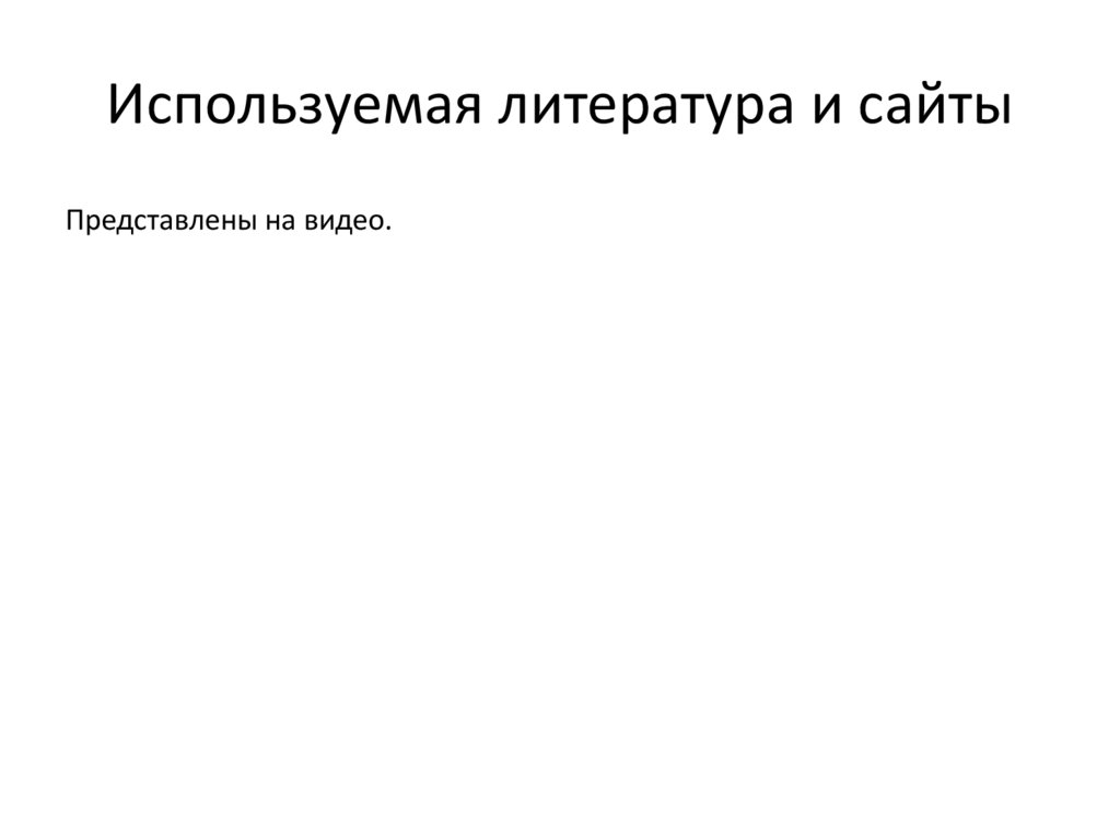 Используемая литература и сайтыПредставлены на видео.