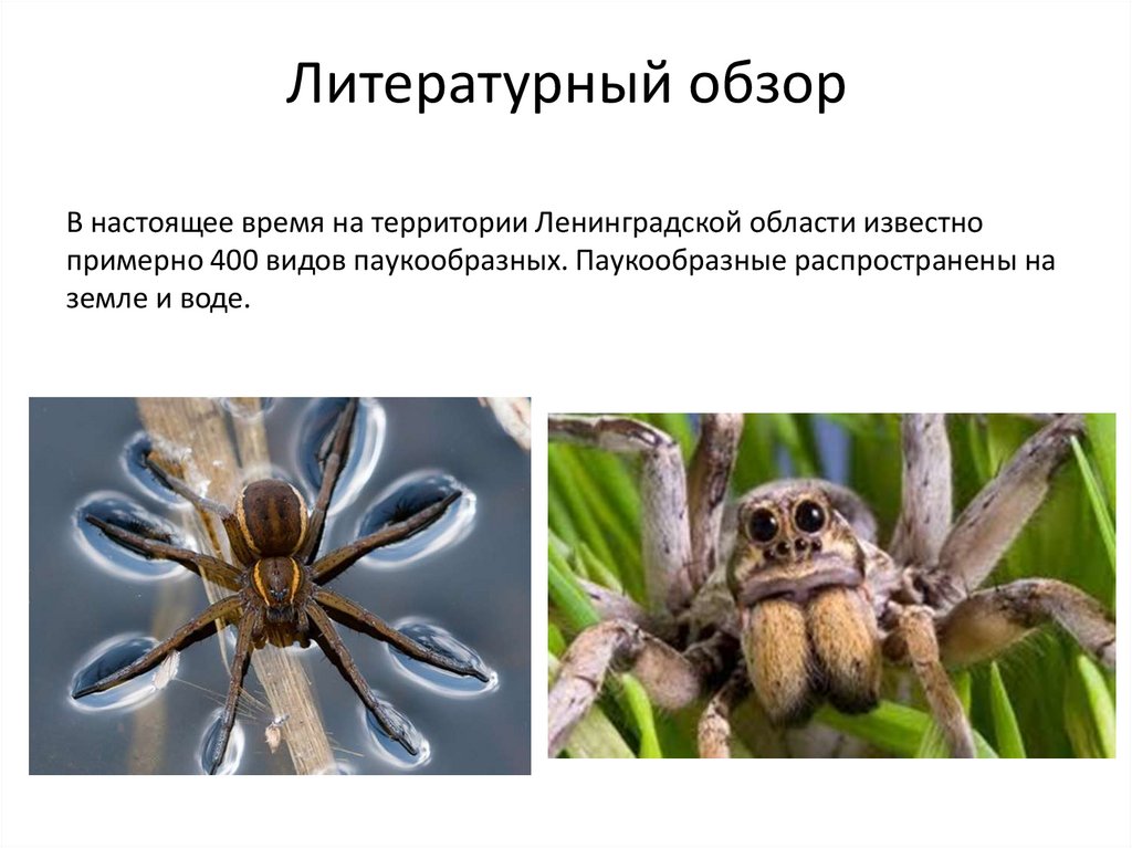 примерно 400 видов паукообразных. Паукообразные распространены на