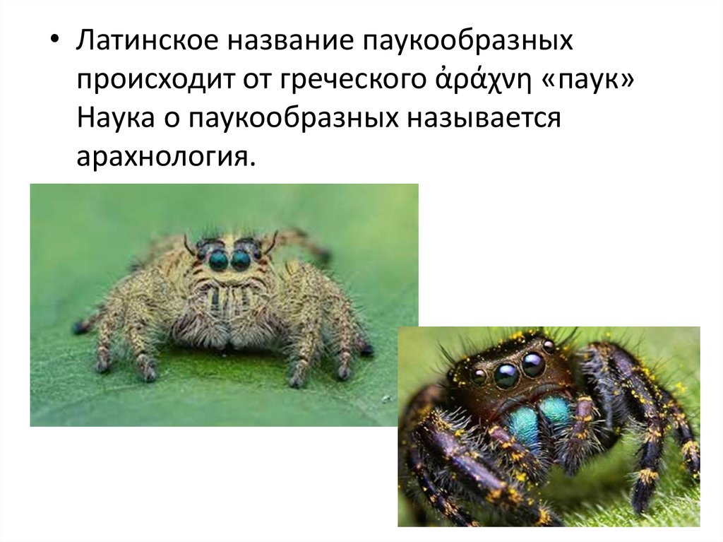 • Латинское название паукообразныхпроисходит от греческого ἀράχνη «паук»