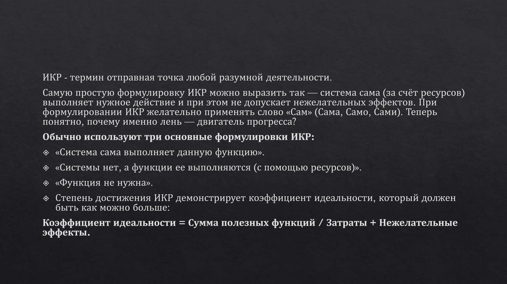 Метод проектирования и получения ИКР (идеальный конечный результат)