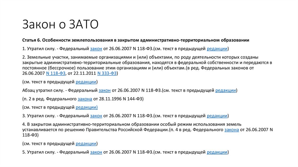 Закон о ЗАТОСтатья 6. Особенности землепользования в закрытом административно-территориальном образовании