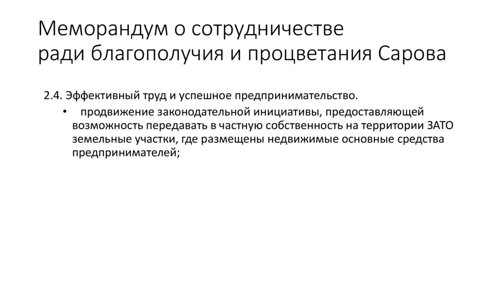 Меморандум о сотрудничестверади благополучия и процветания Сарова