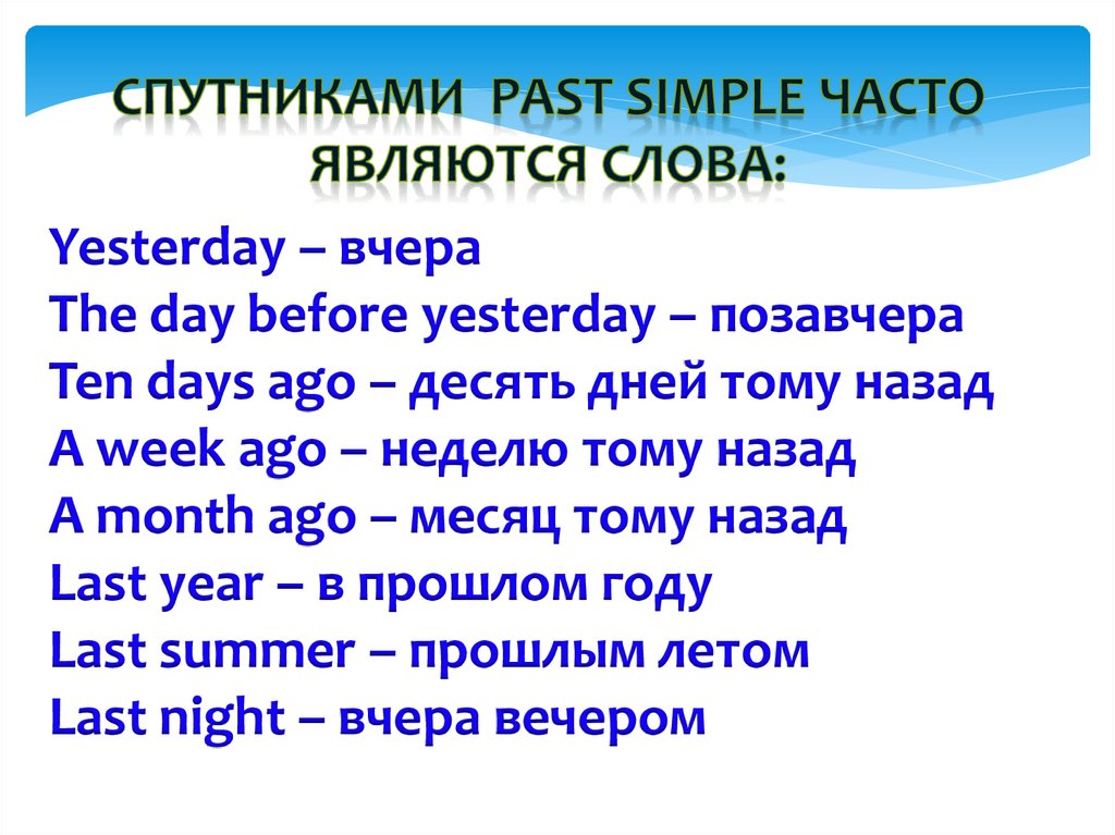 Yesterday – вчераThe day before yesterday – позавчера