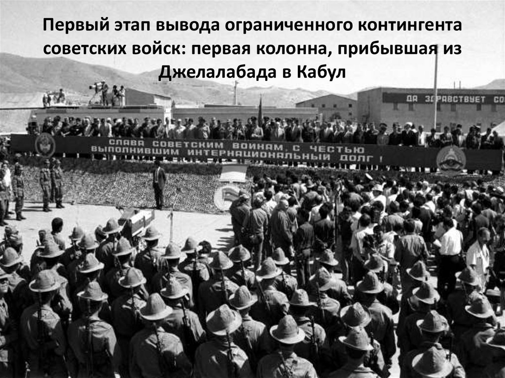 Первый этап вывода ограниченного контингентасоветских войск: первая колонна, прибывшая из