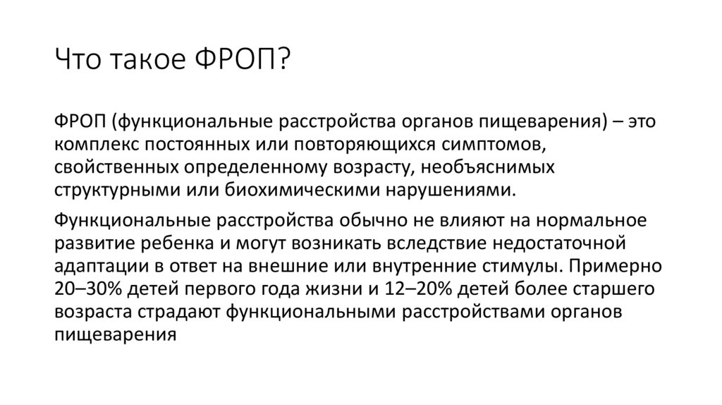 Что такое ФРОП?ФРОП (функциональные расстройства органов пищеварения) – это