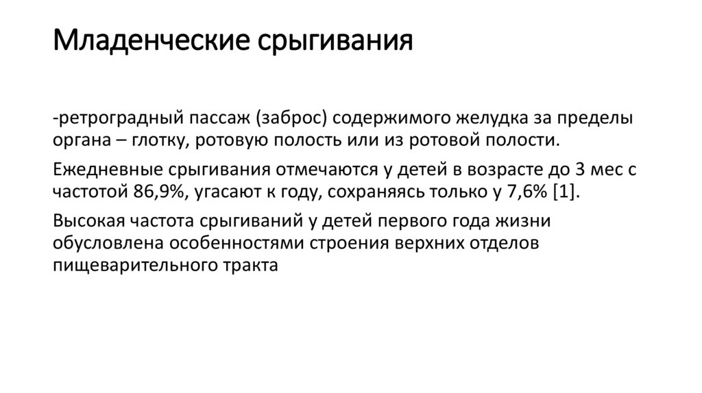 Младенческие срыгивания-ретроградный пассаж (заброс) содержимого желудка за пределы