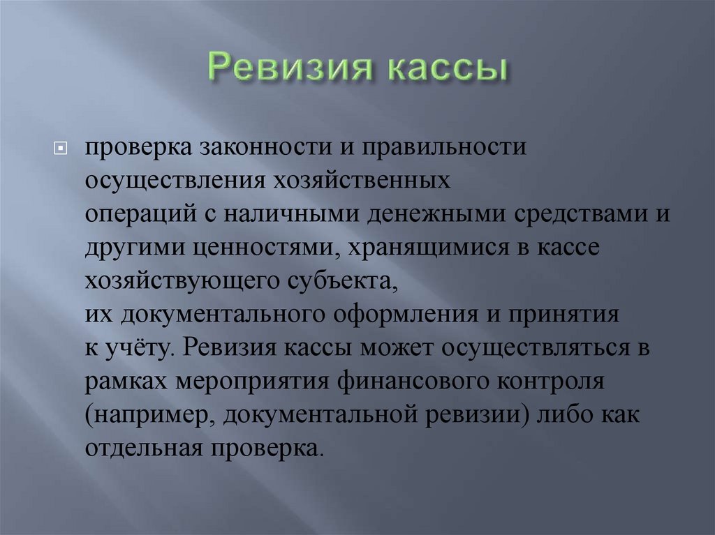 к учёту. Ревизия кассы может осуществляться в