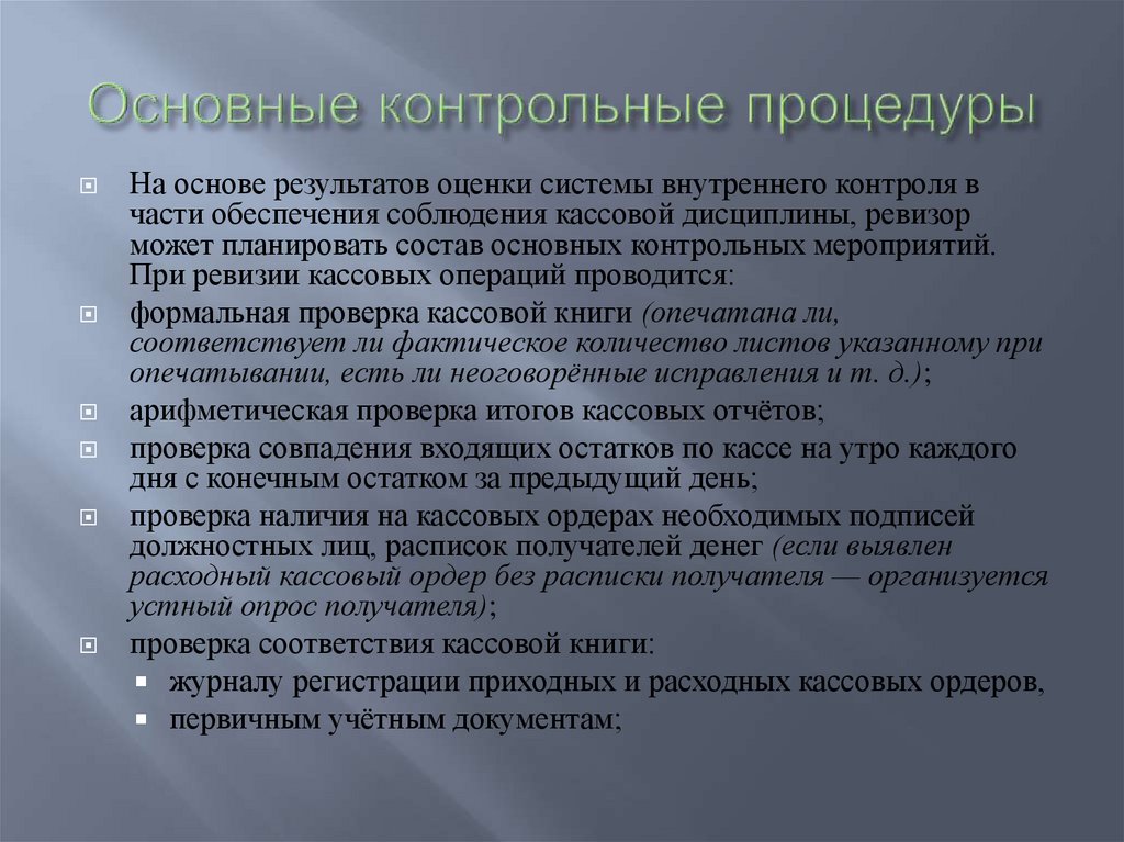 проверка соответствия кассовой книги: