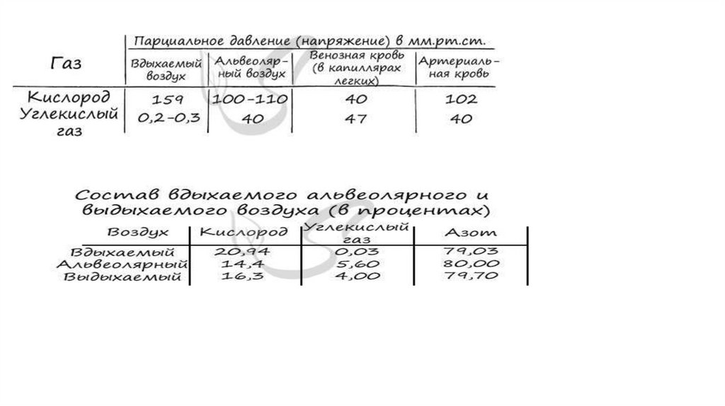 вдыхаемым воздухом и кровью. (7)Перенос кислорода из альвеол в кровь и