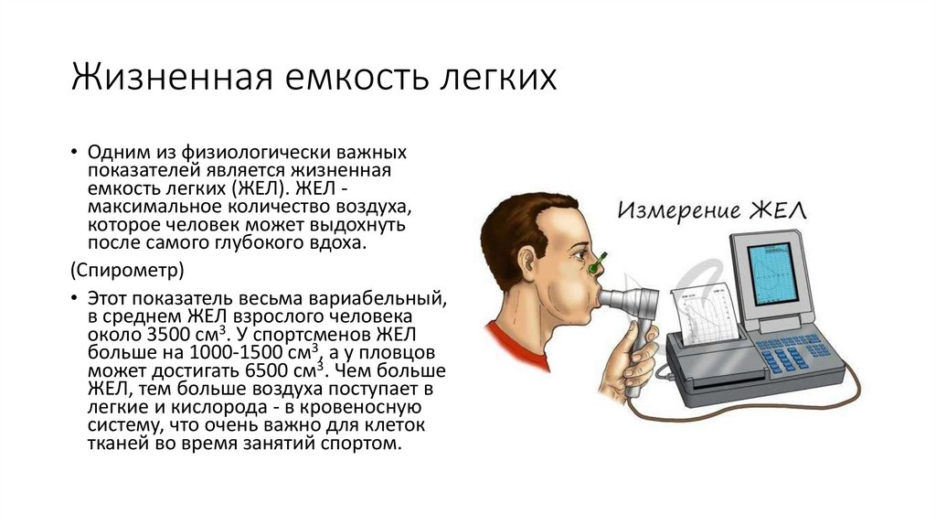 емкость легких (ЖЕЛ). ЖЕЛ максимальное количество воздуха,