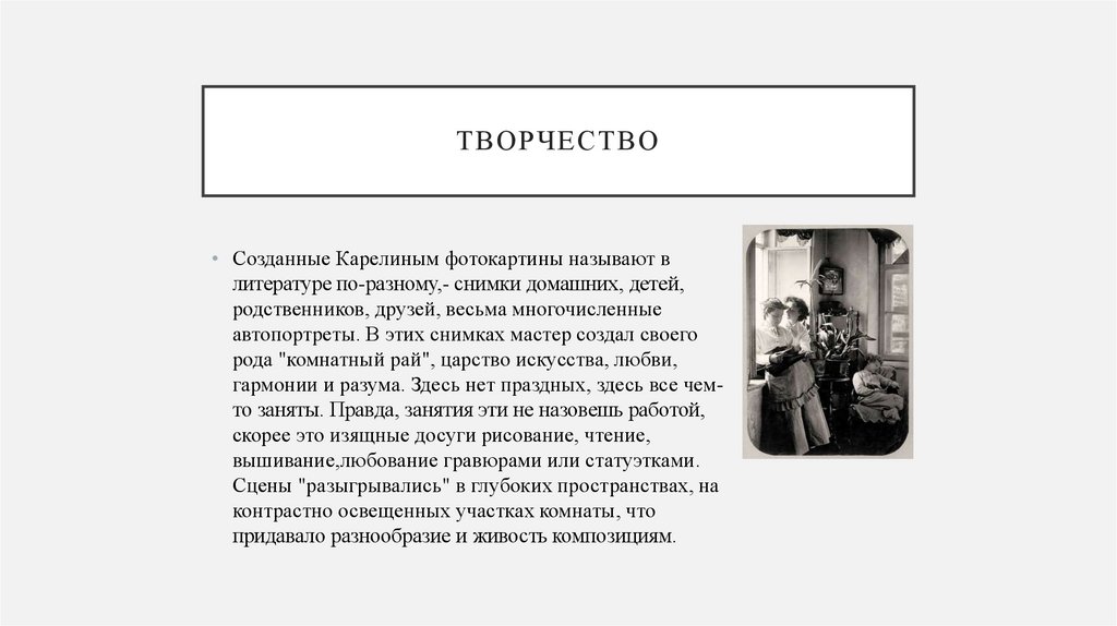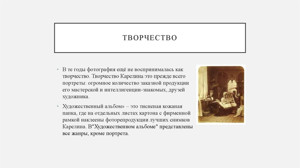 ТВОРЧЕСТВО• В те годы фотография ещё не воспpинимaлacь как