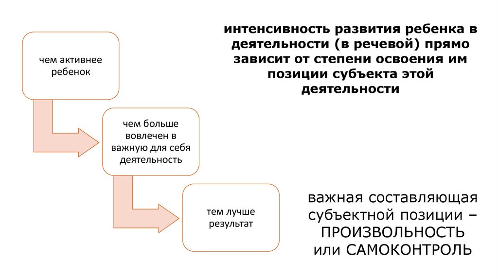 интенсивность развития ребенка вдеятельности (в речевой) прямо