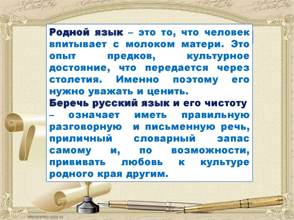 Родной язык – это то, что человеквпитывает с молоком матери. Это
