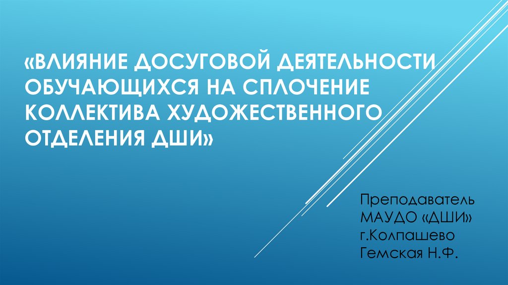 Влияние досуговой деятельности обучающихся на сплочение коллектива художественного отделения ДШИ