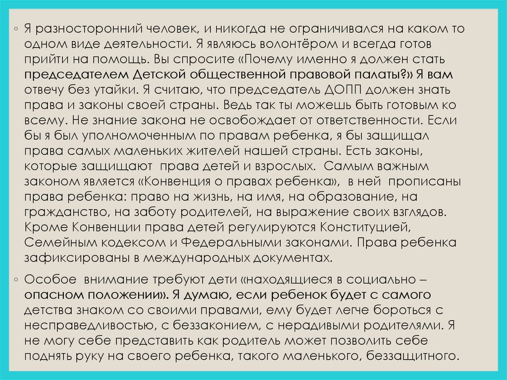 председателем Детской общественной правовой палаты?» Я вам