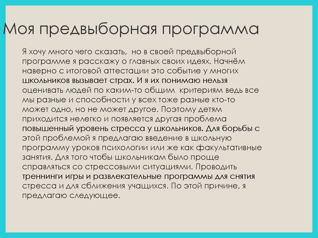 Моя предвыборная программаЯ хочу много чего сказать, но в своей предвыборной