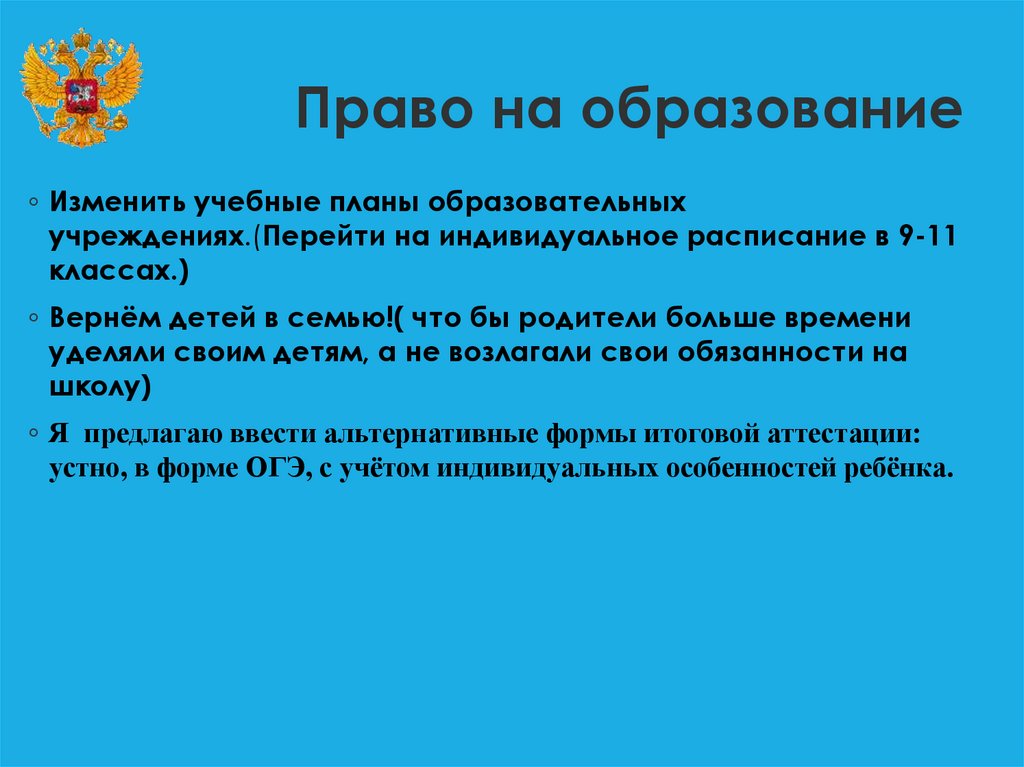 Право на образование◦ Изменить учебные планы образовательных
