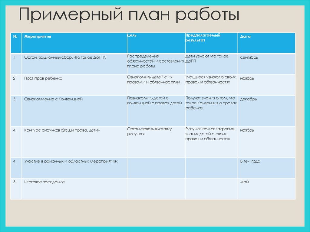 Примерный план работы№