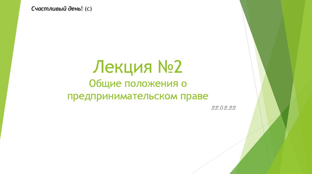 Общие положения о предпринимательском праве. Лекция №2