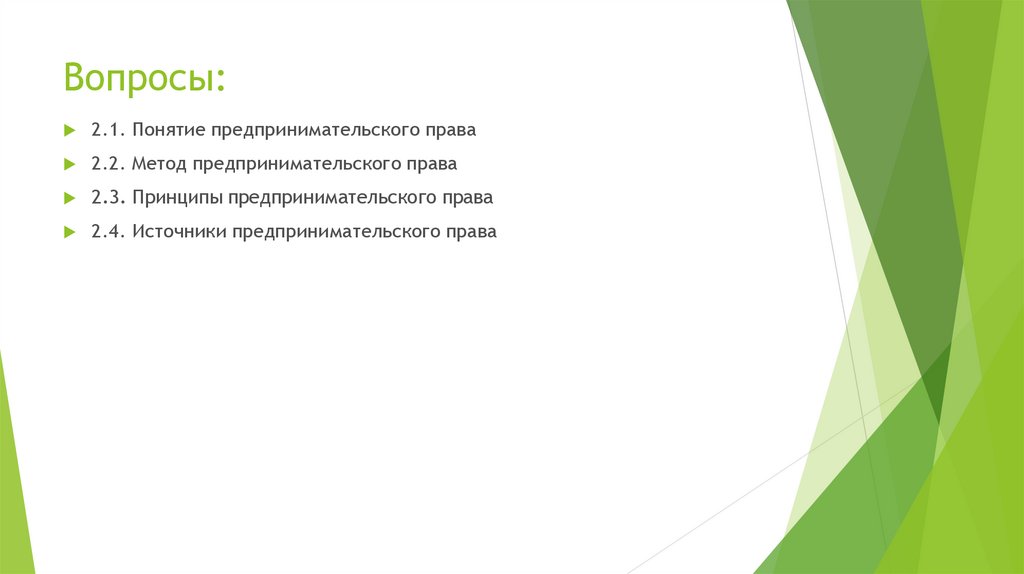 Вопросы:2.1. Понятие предпринимательского права