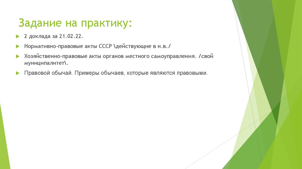 Задание на практику:2 доклада за 21.02.22.
