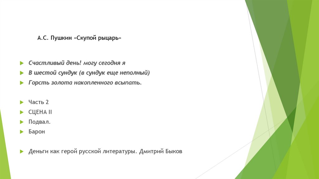 А.С. Пушкин «Скупой рыцарь»Счастливый день! могу сегодня я