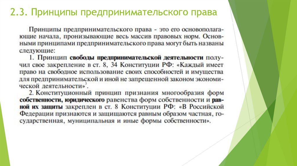 2.3. Принципы предпринимательского права