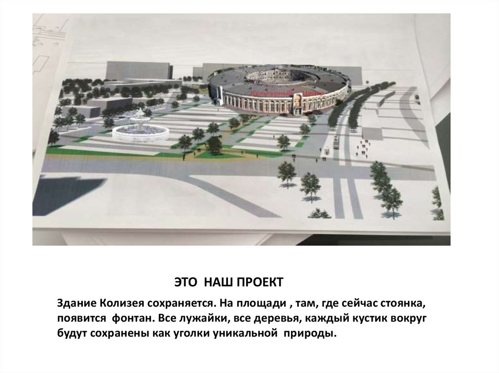 ЭТО НАШ ПРОЕКТЗдание Колизея сохраняется. На площади , там, где сейчас стоянка,