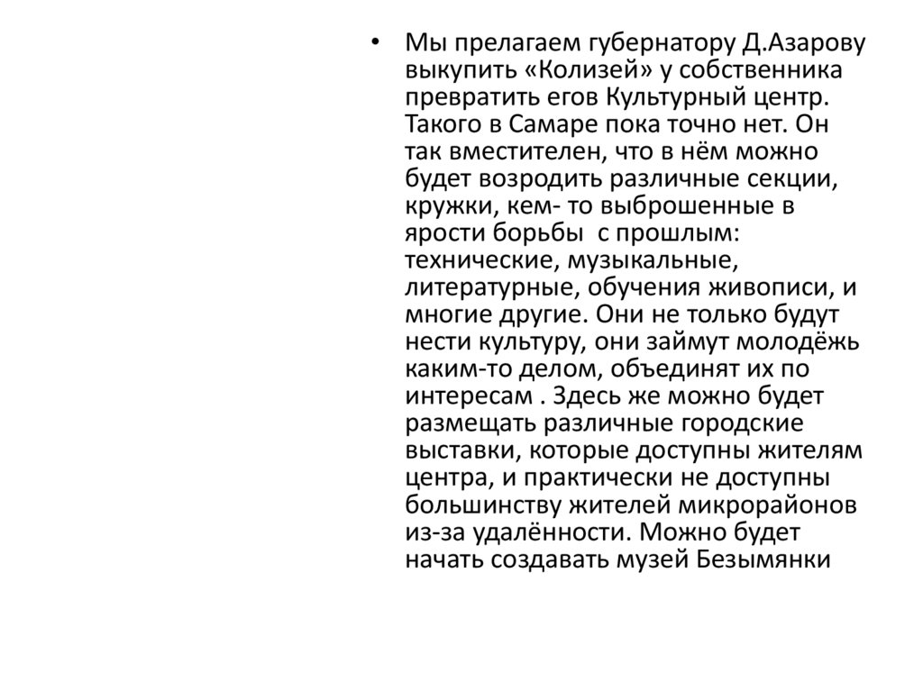 • Мы прелагаем губернатору Д.Азаровувыкупить «Колизей» у собственника