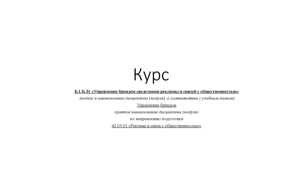 КурсБ.1.Б.31 «Управление брендом средствами рекламы и связей с общественностью»