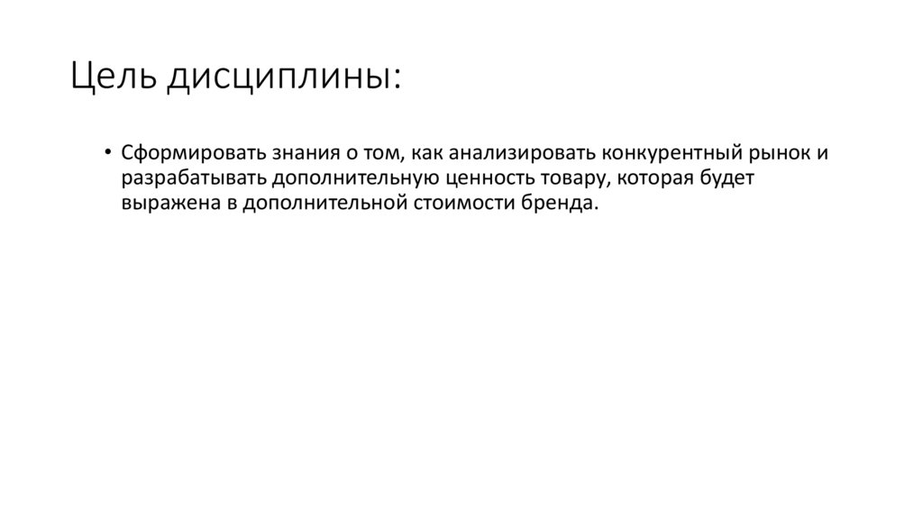 Цель дисциплины:• Сформировать знания о том, как анализировать конкурентный рынок и