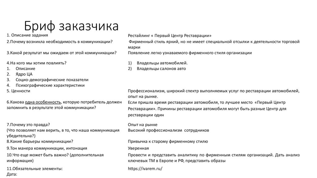 • Студенты согласно брифу заказчика на занятиях разрабатывают